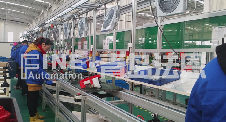 全線采用工作站式裝配系統(tǒng)和智能倍速鏈輸送線相結(jié)合的模式,全自動(dòng)定子熱套設(shè)備、全自動(dòng)點(diǎn)膠涂膠系統(tǒng)、全自動(dòng)翻轉(zhuǎn)機(jī)、伺…